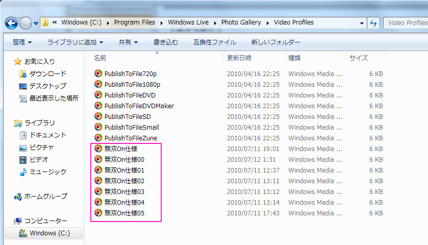 Windows(C) ≫ ProgramFiles ≫ WindowsLive ≫ PhotoGallery ≫ VideoProfiles