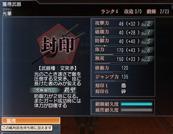 さっそくGETした叉突矛で試し斬り…と行きたいところだけどGETしたのは封印…orz