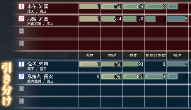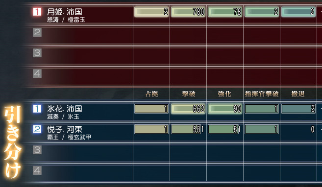 この戦いは時間いっぱい戦いまして、総撃破数でこちらの勝ちになりました♪