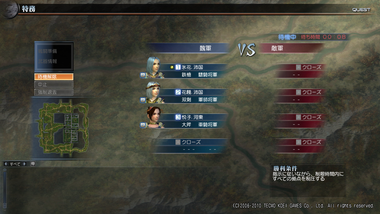 まず最初は【勝利条件:不明、マップ:不明】でやりました。