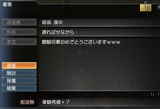 ついでにことはさんのメイン(大将軍w)と会えたらいいな~と思いつつ数戦戦っていると・・・