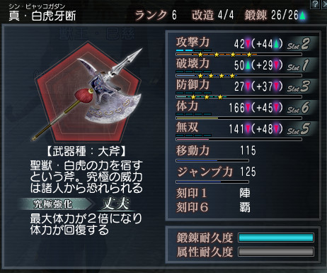 まだ特別強化がほとんどないので今まで使ってた大斧と大した変わらないけど