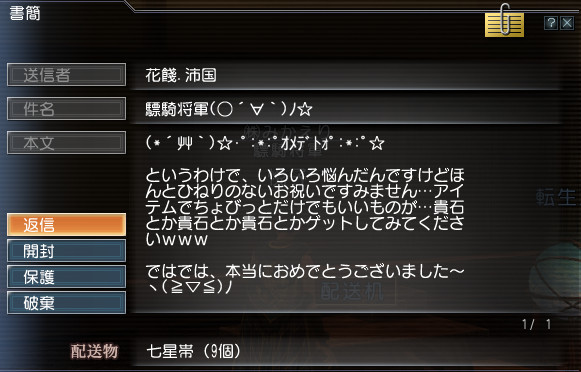 INするとおかんからお祝いのプレゼントが!