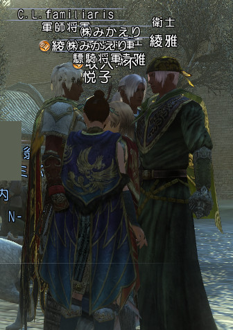 "真・陥陣営"綾雅は氷花.沛国に、俺様たち、おそろいマントだねw