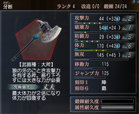 移動大斧使う場合は、やはり442というかなり防御面が危険な鍛錬なので