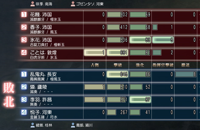 土曜日(16日)、蜀vs呉の争奪が行われておりましたが、