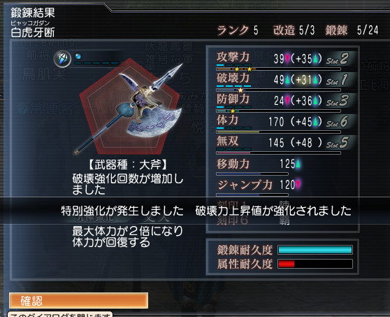 現在使用回数稼ぎしてる大斧の破壊が削れたので、鍛錬してみたら…