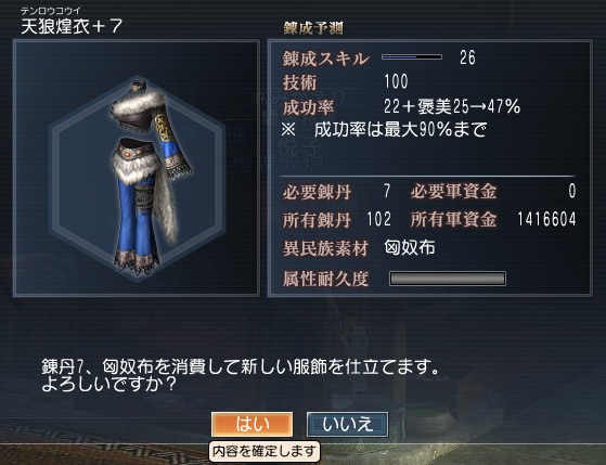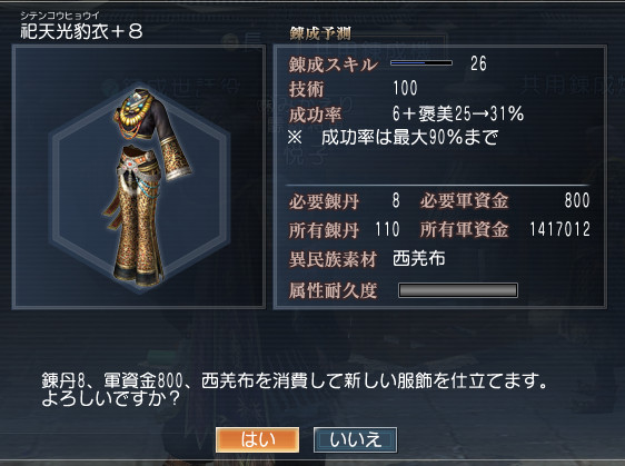 新仮面に合わせたいと思ってる仕立て服を作りたかったので、思い切って+8でチャレンジ!