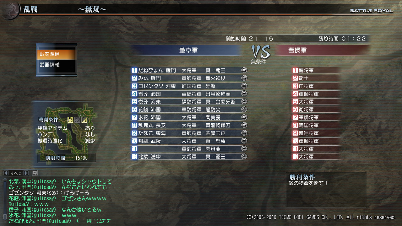 ウチは曹操軍(しろちゃん)と劉備軍(蜀サブ君)からだったら参加できるぞw