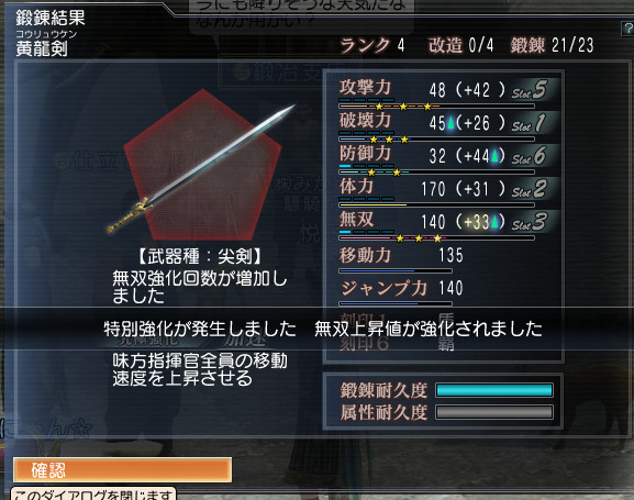 その後、また使用回数稼ぎで使ってたら攻撃が削れたので鍛錬したら・・・