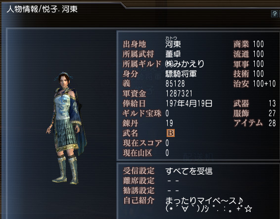 あ、そうだ!メインの悦子、大将軍まで残り15000切りました(ヾ(´▽`)ノ ワァァァィッ*:・'゚☆
