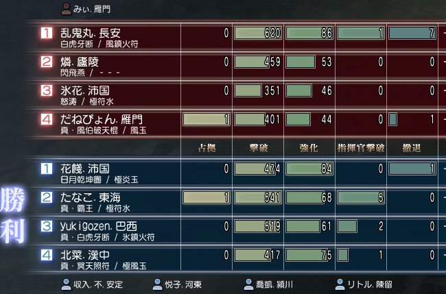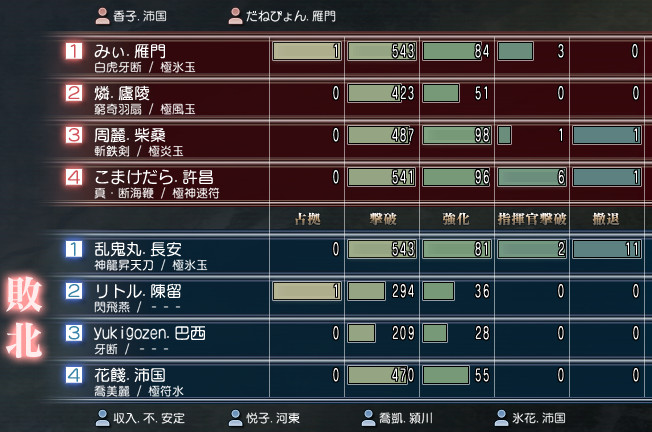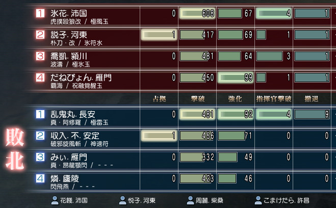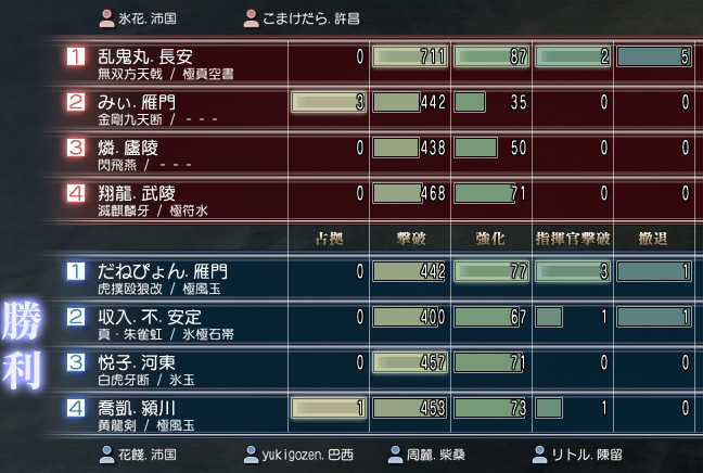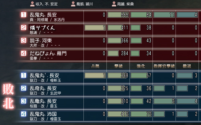 ちなみに乱さんの撤退数が多いのは副将にやられたからだそうです(´m`*)プッw