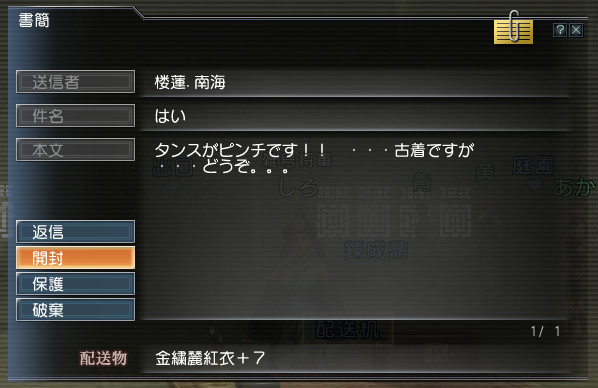しろちゃんでINした時、なんと!楼さんから服飾を頂きました゚+. (人´▽`) .+゚