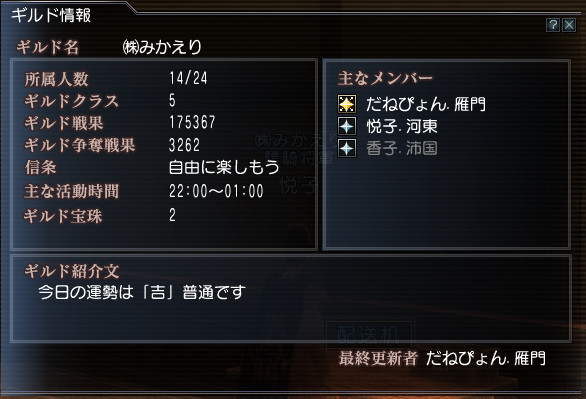 いったい何を変更したんだろう?とギルド情報を見てみると・・・
