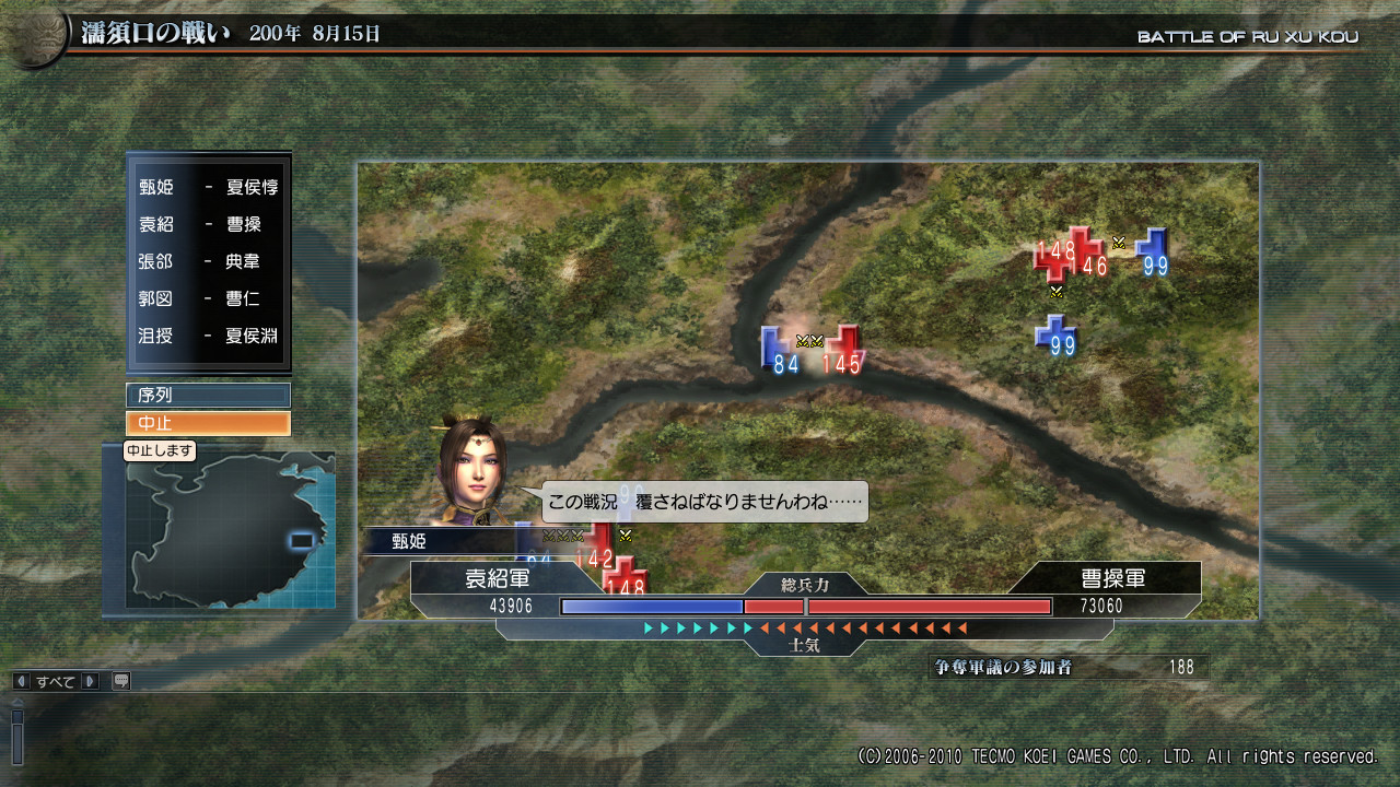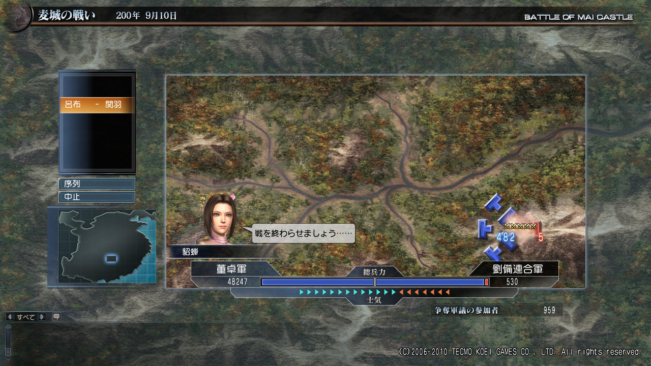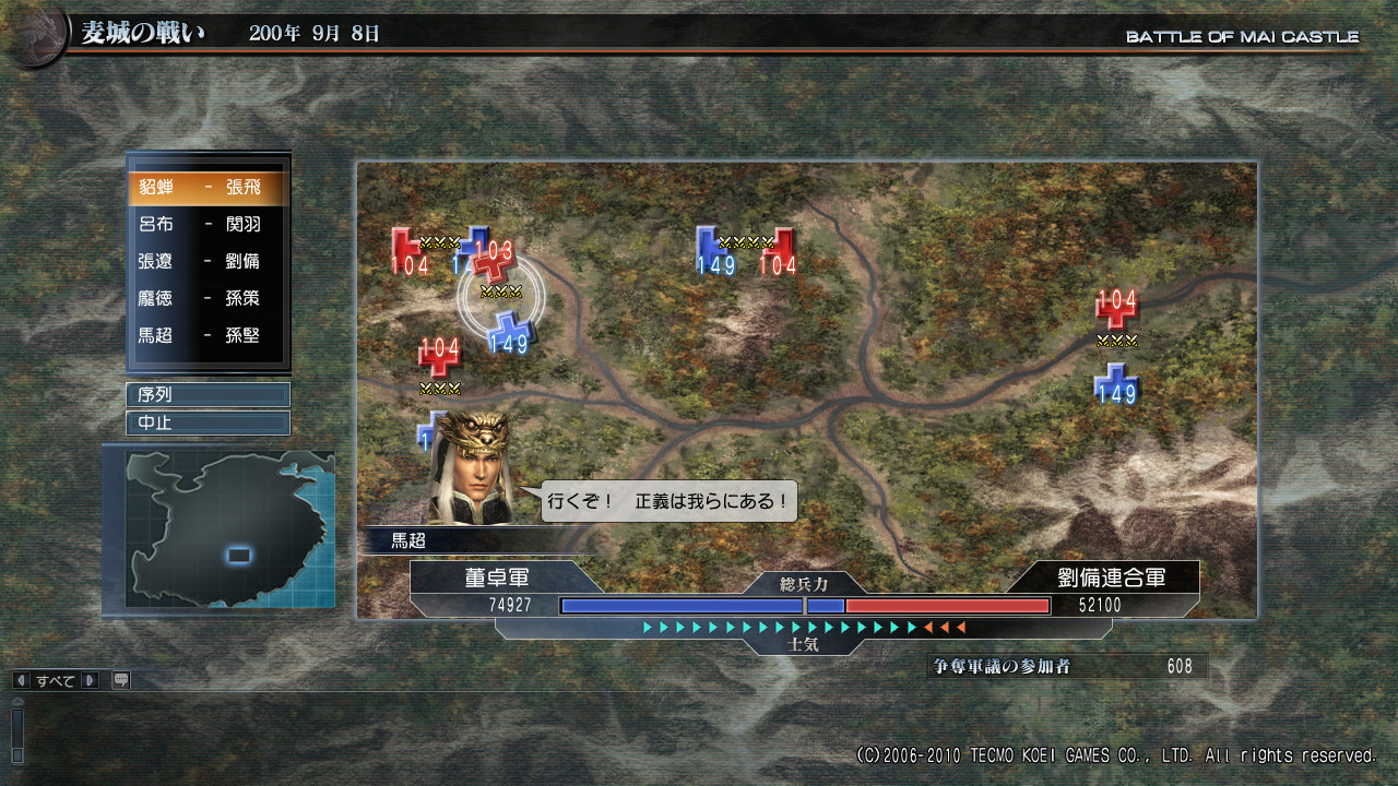 董卓軍vs劉備連合軍。兵力士気共にこちらが有利。