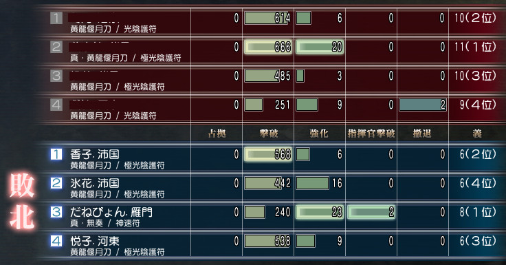 【9戦目】 要塞・改 総大将 ○ +8