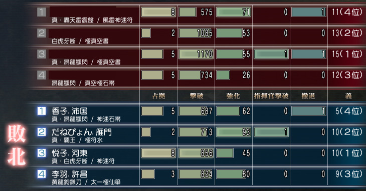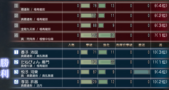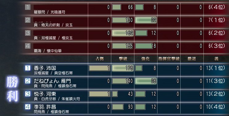 土曜日(16日)は曹操軍vs袁紹軍の争奪でしたね。