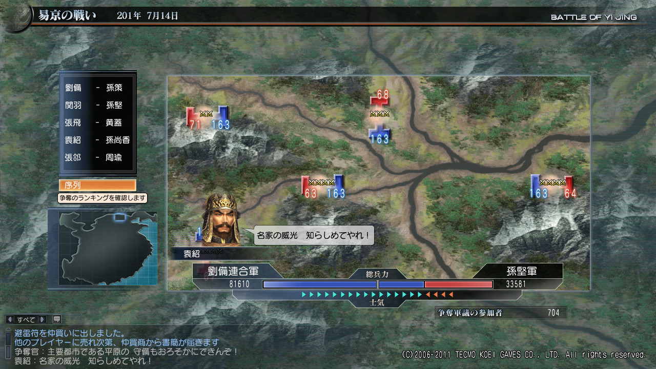 土曜日(30日)は孫堅軍vs劉備連合軍(劉備+袁紹)でした。