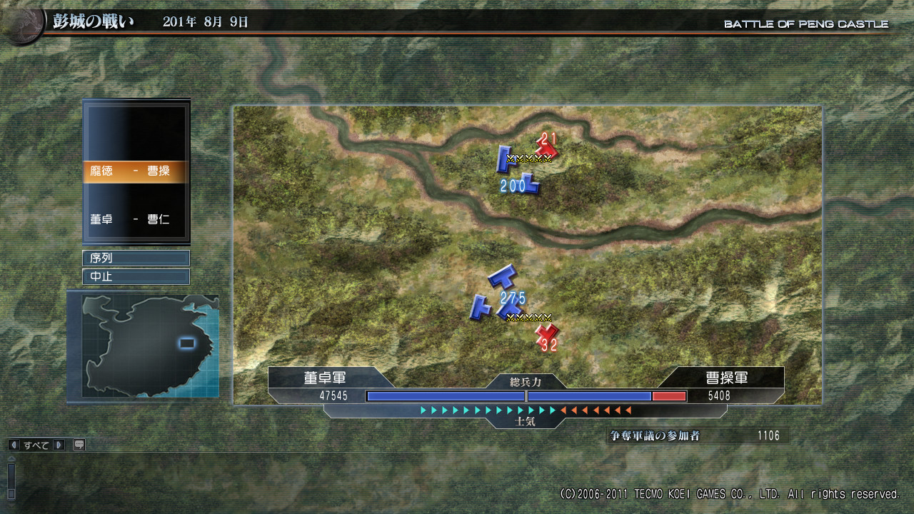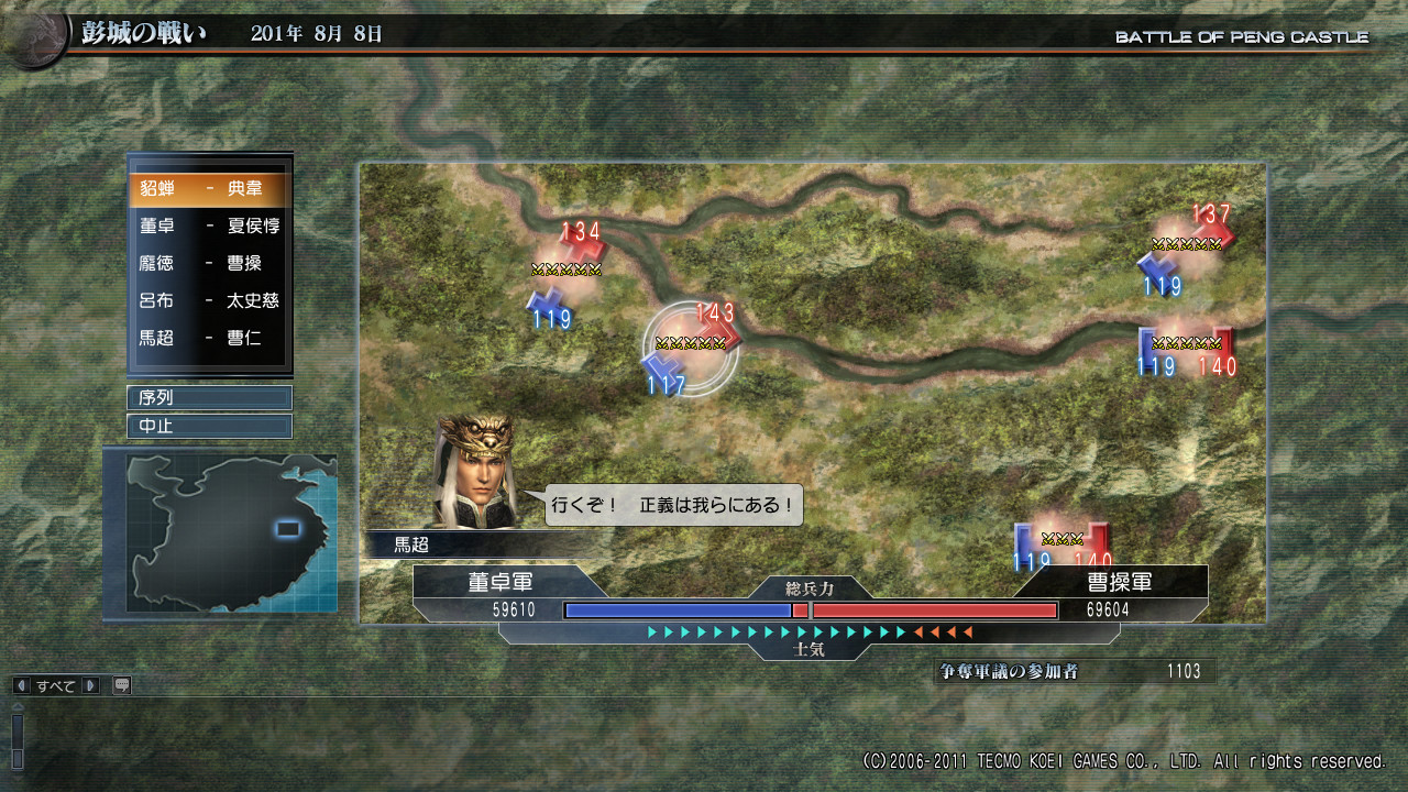 兵力は曹操軍が有利、士気は董卓軍が有利な状態でスタート!