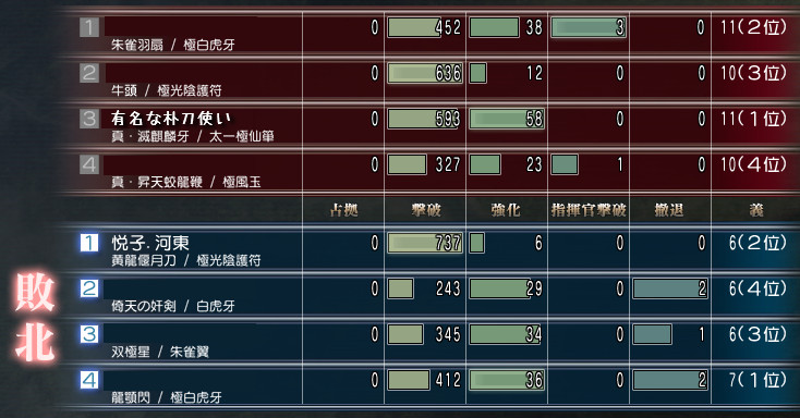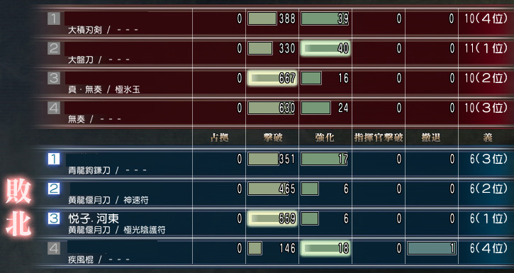 こちらの4番さんと敵1、2番さんが校尉、あとは将軍。