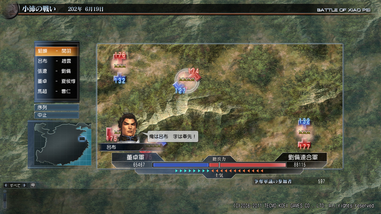 土曜日(14日)は、董卓軍vs劉備連合軍(劉備+曹操)の争奪戦が行われました。