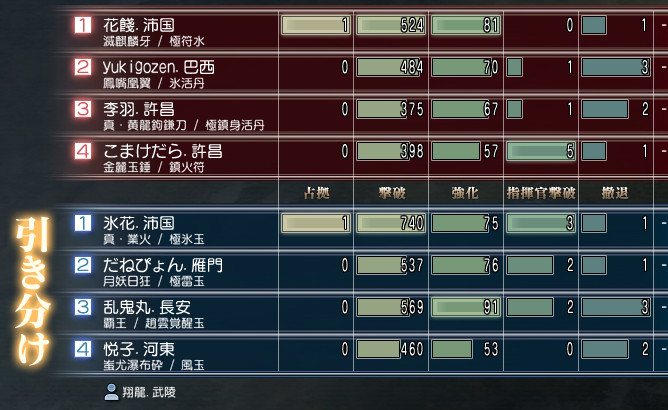 争奪はと言いますと、分かりきってましたが逆転して董卓軍に勝ちでしたね。