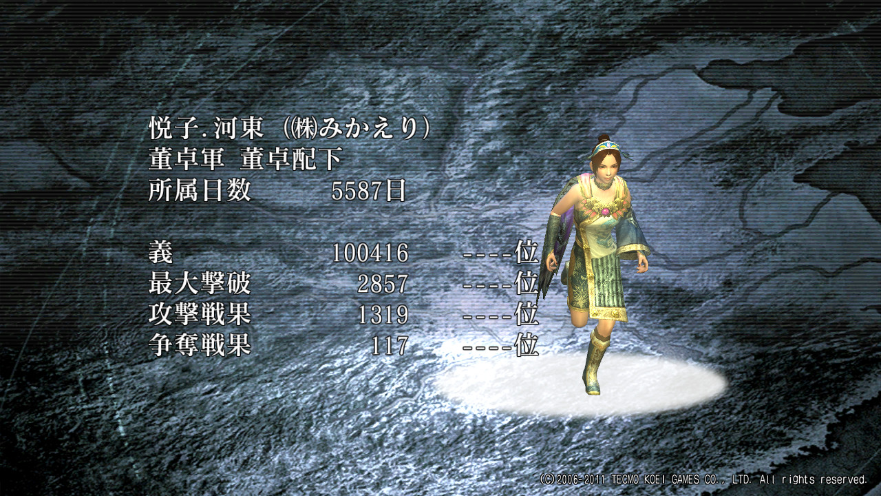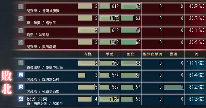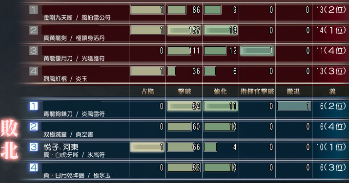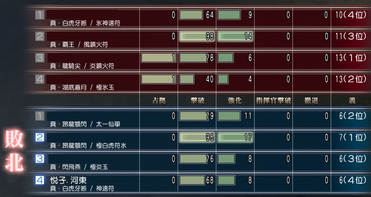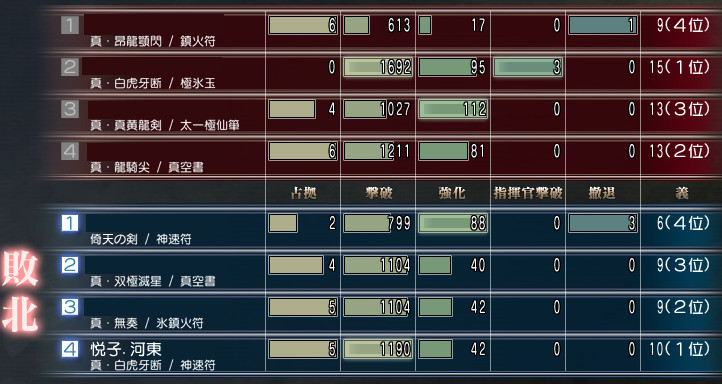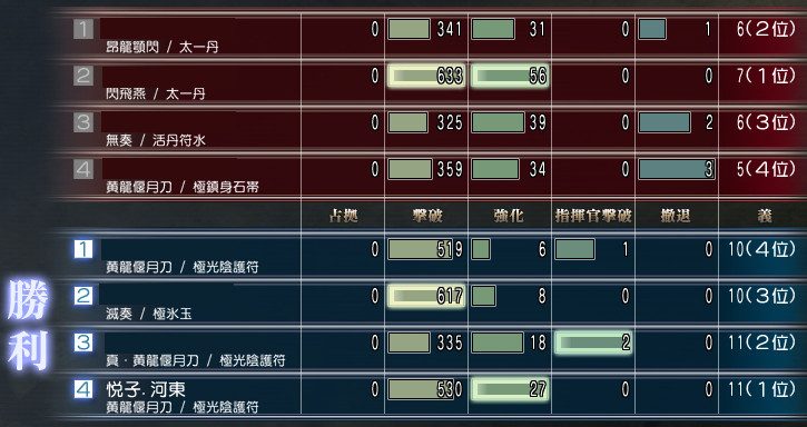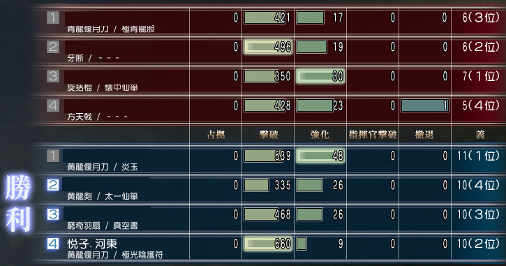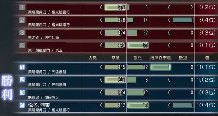 2位 孫堅軍 3位 劉備軍 4位 曹操軍 5位 袁紹軍