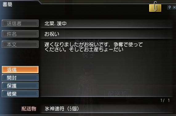 INするとオカンからお祝いが!゚☆,。・:*:・゚★o(´▽`*)/♪Thanks♪\(*´▽`)o゚★,。・:*:・☆゚