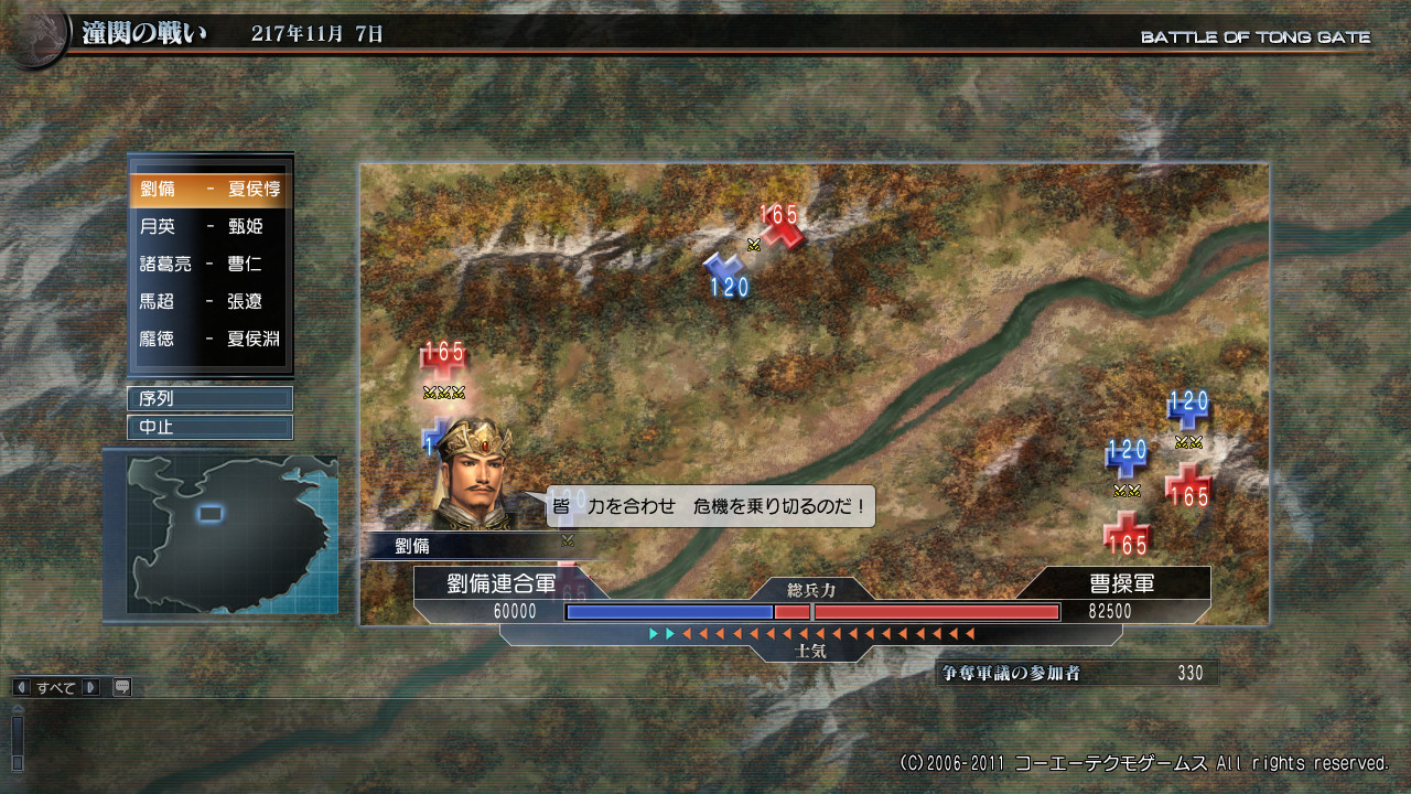 劉備連合軍(劉備+馬超)vs曹操軍の争奪ですね。