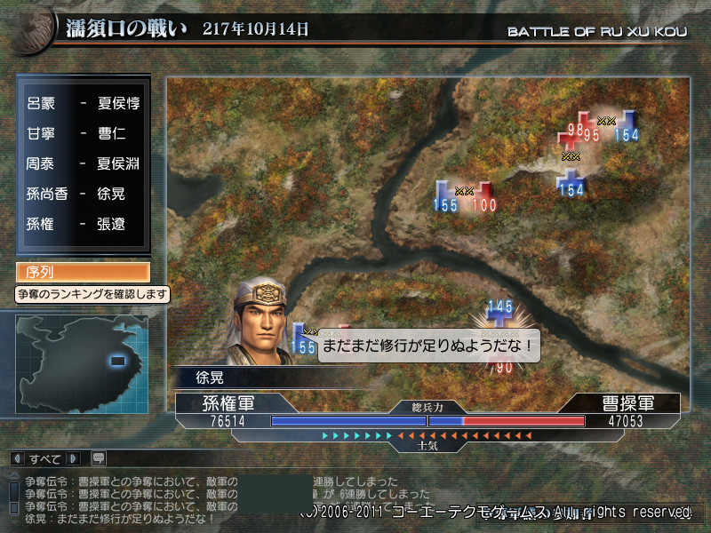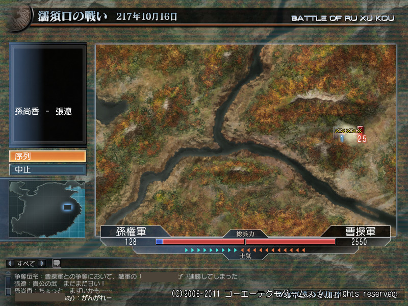 終盤で逆転して、結局曹操軍の勝ちで終りました。