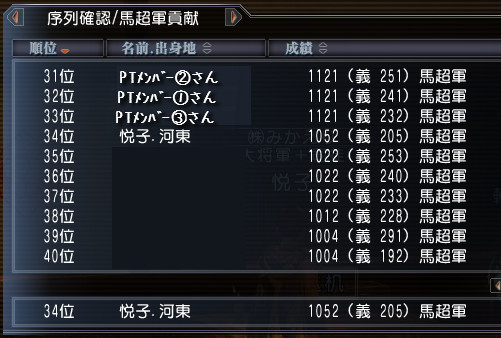 きっと大将軍~都督くらいで争奪上位PTなのかもね。