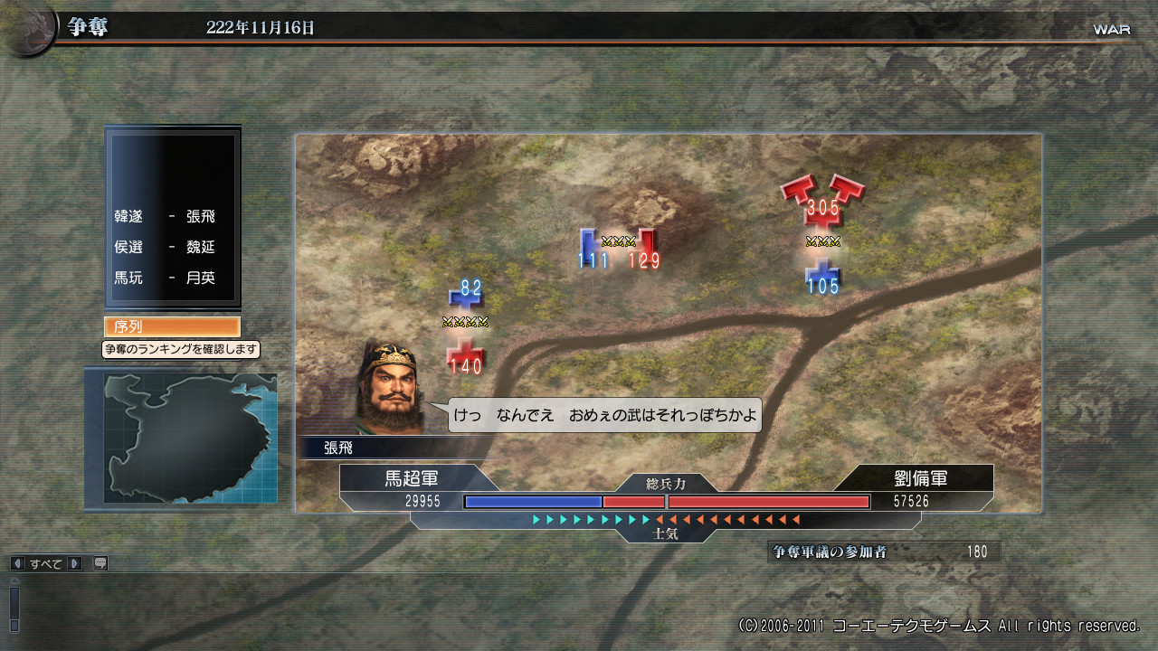 結果は…公式で確認すると、やはり劉備軍が勝利したようです。