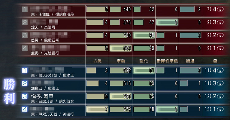 【1戦目】 総大将(消失・撃破数) 堅関 × -37