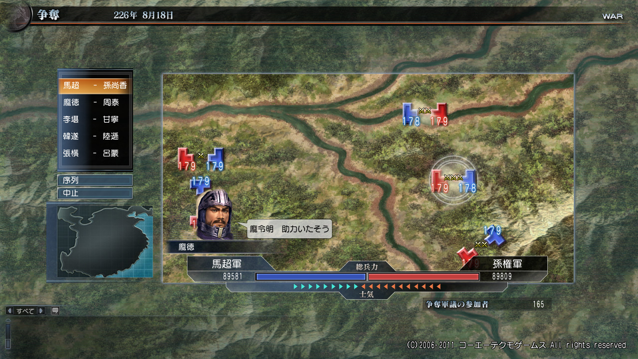 孫権軍の上位陣が軒並み就寝されたからなのか、馬超軍が追い上げ、そして逆転!