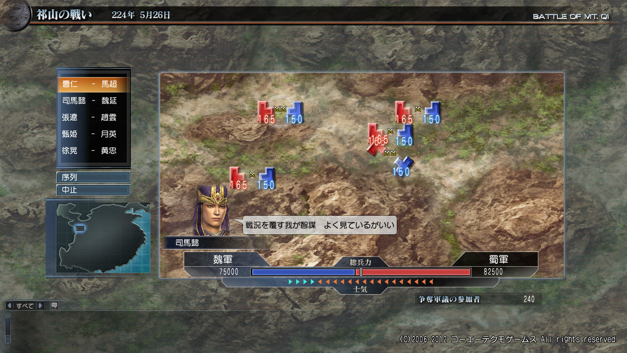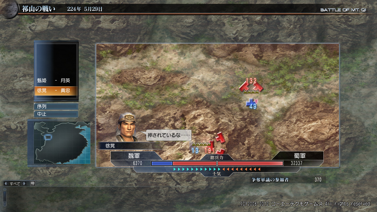 争奪は、逆転することもなくそのまま魏軍が負けてしまいましたね。