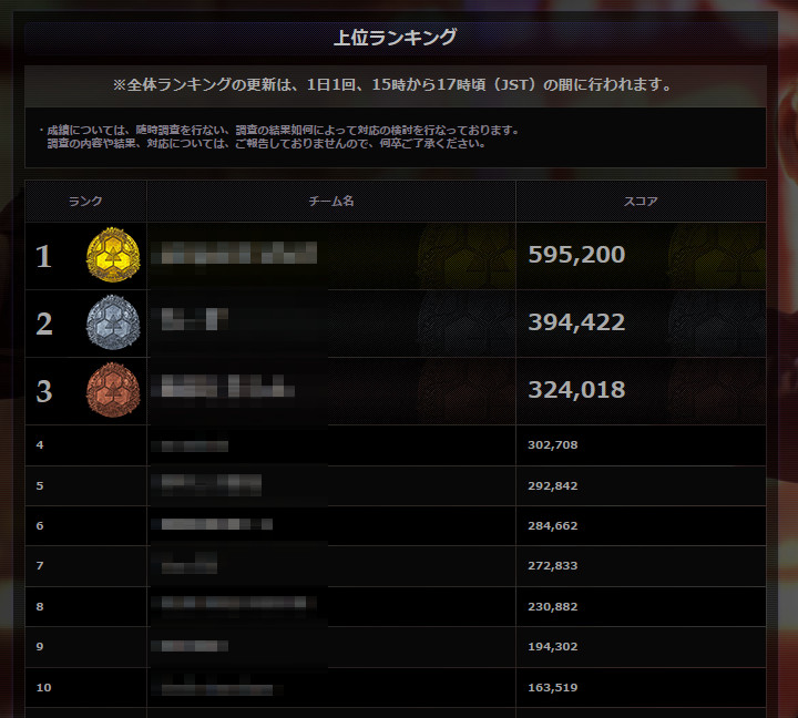ちなみに、これは最終スコアです。チームスコアはまだ反映されてないけどねw