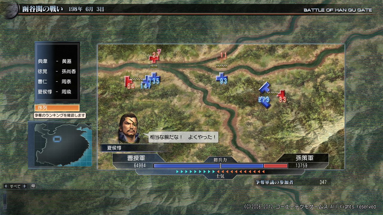 落ちる前に撮ったやつ。争奪は曹操軍勝利で終ったみたいですね。
