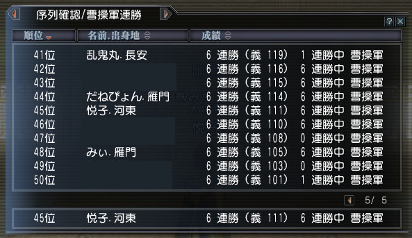 人の多い曹操軍で序列に入れることなんてなかなか無いのでちょっと嬉しいv