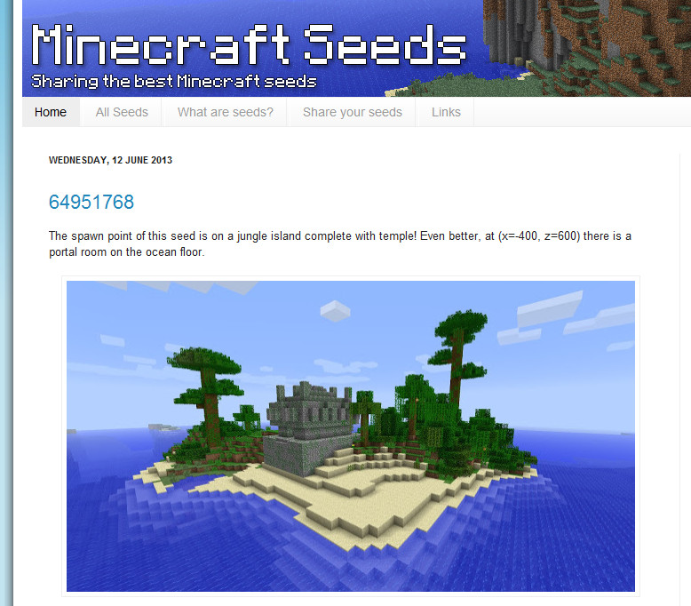 ここのサイトに載ってるシード値のマップで遊んでみることにしました。