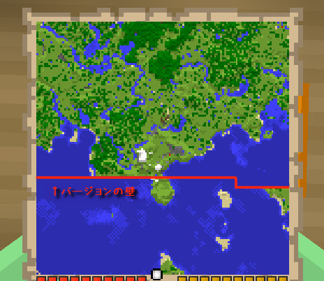 バージョンの壁から下が1.6.4バージョン仕様、上が1.7.2バージョンの地域です。