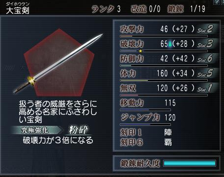 ちなみに長双刀は下から2番目の異民族、宝剣は下から3か4番目の地域(名前忘れた^^;)で手に入れました。